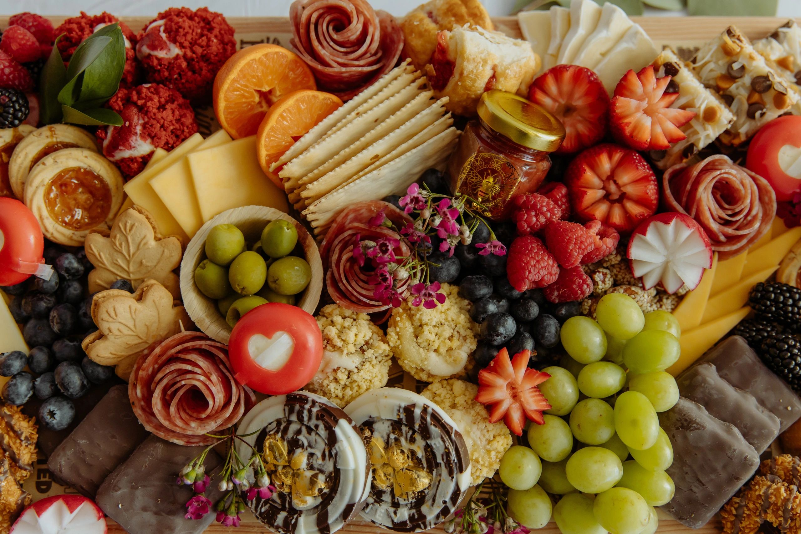 We provide custom charcuterie for all events, including weddings, corporate events, and private parties. Our creative team is always dedicated to making sure your event is a success. Contact us today to learn more about our services and discuss your event needs!